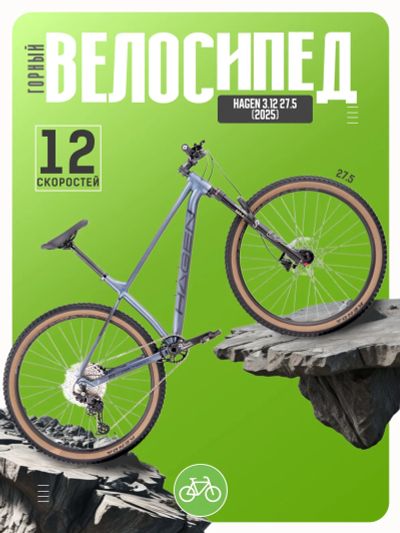 2 513руб.Горный велосипед Hagen Zero 8 27.5, год 2025, цвет Серый, ростовка 18