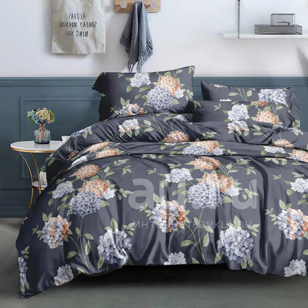 Постельное белье 2-спальное, простыня 200х220 см, 2 наволочки 70х70 см, пододеяльник 175х215 см, Майская ночь, полисатин, Цветы, серый 20/285-AC/MA