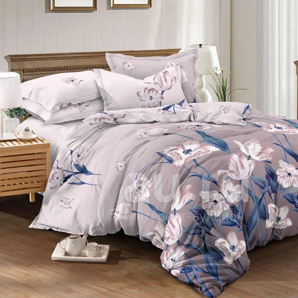 Постельное белье 2-спальное, простыня 200х220 см, 2 наволочки 70х70 см, пододеяльник 175х215 см, Майская ночь, полисатин, Цветы, фиолетовый 20/059-AC/M