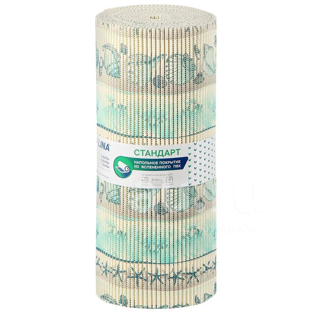 Коврик для ванной, антискользящий, 0.65х15 м, вспененный ПВХ, бирюзовый, Вилина, Аква Стандарт, V18BL, ракушки