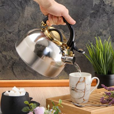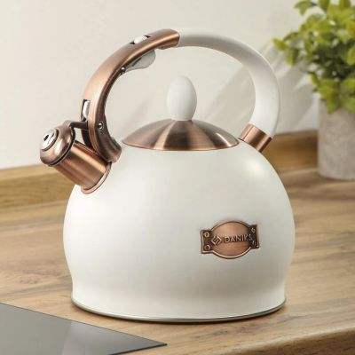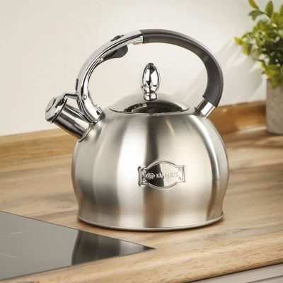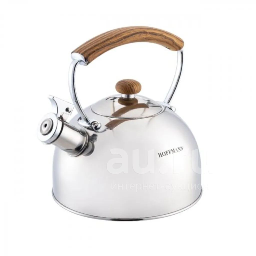 Чайник нержавеющая сталь, 2.5 л, со свистком, зеркальный, коричневая ручка, Hoffmann, индукция, НМ 55208