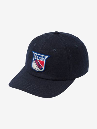 Американская бейсболка New York Rangers из серии Gunner. Бейсболка сшита из красного и синего состаренного хлопка. На передней панели вышит логотип хоккейного клуба "Нью-Йорк Рейнджерс", основанного в 1926 году и играющего в НХЛ. Размер головного убора регулируется с помощью текстильного ремешка с металлической пряжкой и кнопки. Предусмотрены люверсы для вентиляции. Длина козырька 7 см, глубина бейсболки 11 см.