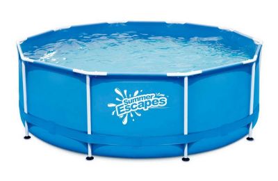 основная информация круглый каркасный бассейн summer escapes p20-1042-z подойдет для установки во дворе дома или на приусадебном участке. это модель трехметрового бассейна без фильтр-насоса для очистки воды, но включающая в комплект лестницу, подстилку и защитный тент. фильтрующий насос или систему очистки воды можно приобрести дополнительно. каркас бассейна p20-1042-z выполнен из полых металлических трубок с антикоррозийным покрытием. чаша бассейна изготовлена из 3-слойного материала с внутренним слоем армирующей сетки. такая конструкция делает бассейн прочным и устойчивым. каркасный бассейн оборудован сливным клапаном, к которому присоединяется садовый шланг для слива воды в удобное для вас место на участке. дополнительные характеристики форма: круглый размеры: 305 x 107 см. объем бассейна: 6,298 л. время сборки: 30 мин. комплектация: покрывало подстилка лестница ремонтный комплект