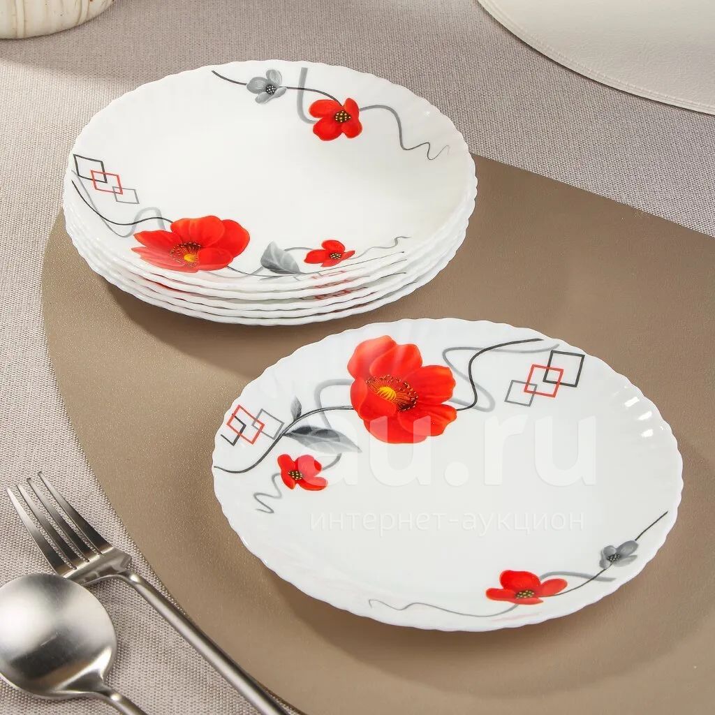 Тарелка десертная, стеклокерамика, 6 шт, 19 см, круглая, Марсель, LHP75