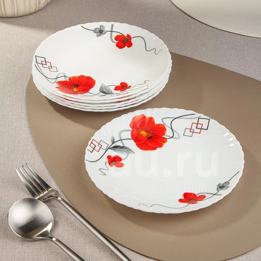 Тарелка обеденная, стеклокерамика, 6 шт, 24 см, круглая, Марсель, LHP95