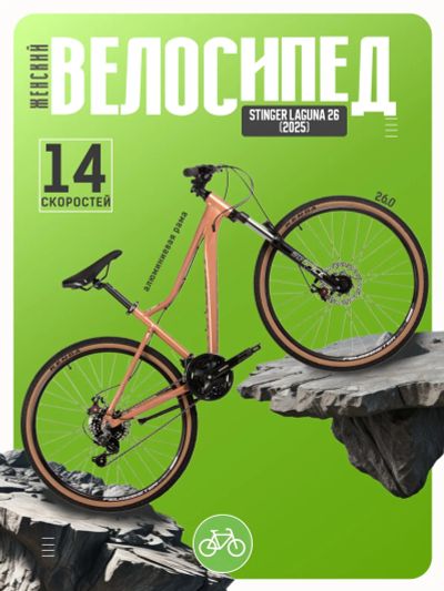 16 999руб.Женский велосипед Foxx Stinger Laguna 26, год 2025, цвет Красный, рос...