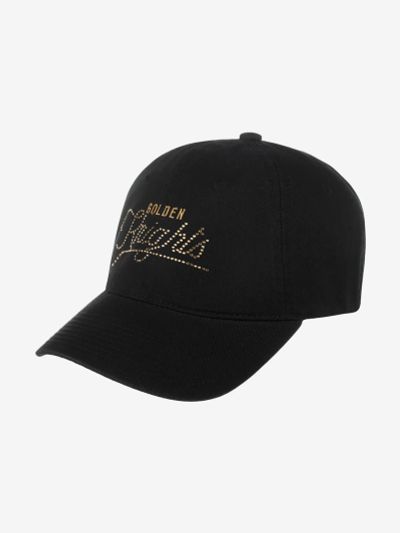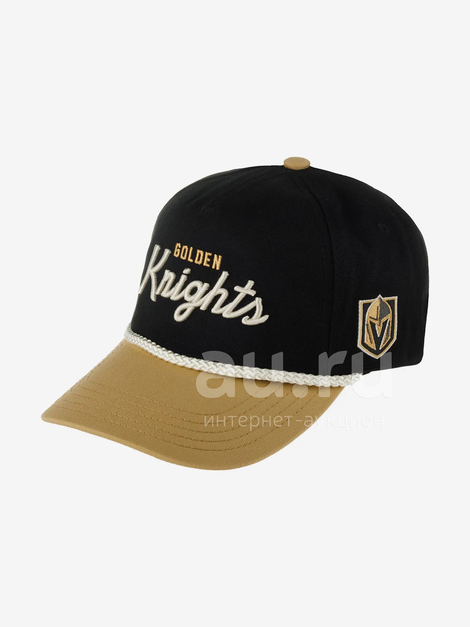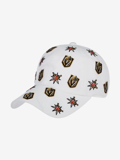 Бейсболка с чуть изогнутым козырьком Vegas Golden Knights Roscoe NHL от американского бренда American Needle. Модель выполнена из плотного хлопка. На передней мягкой панели — частично объемная вышивка золотисто-белой надписи Golden Knights, название хоккейного клуба. Сбоку — вышивка логотипа, которая представляет собой итальянский пехотный шлем XV века под названием "барбют". Место между передней панелью и козырьком декорировано белым шнурком. Внутри по окружности головы вшита лента для комфортной посадки, на ленте — нашивка лиги и марки. Размер бейсболки регулируется с помощью пластиковой застежки. Длина козырька 7 см, глубина 12 см.