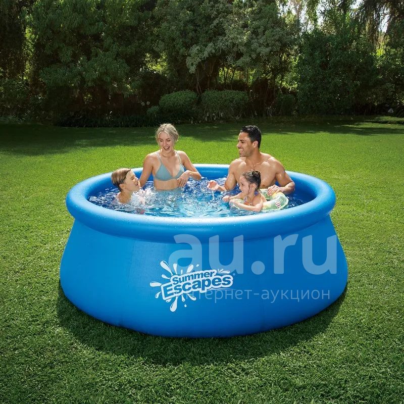 основная информация практичный надувной бассейн summer escapes р10-0830 изготовлен из высококачественного пвх. оригинальность конструкции позволяет легко собирать бассейн за 10 минут. перед наполнением бассейна водой, необходимо накачать верхнее кольцо (насос в комплект не входит) и расправить дно, чтобы не осталось складок. удобный сливной клапан позволяет присоединить садовый шланг, что дает возможность слить воду в любое место. дополнительные характеристики в комплекте: инструкция по установке и использованию ремонтный комплект сливной клапан