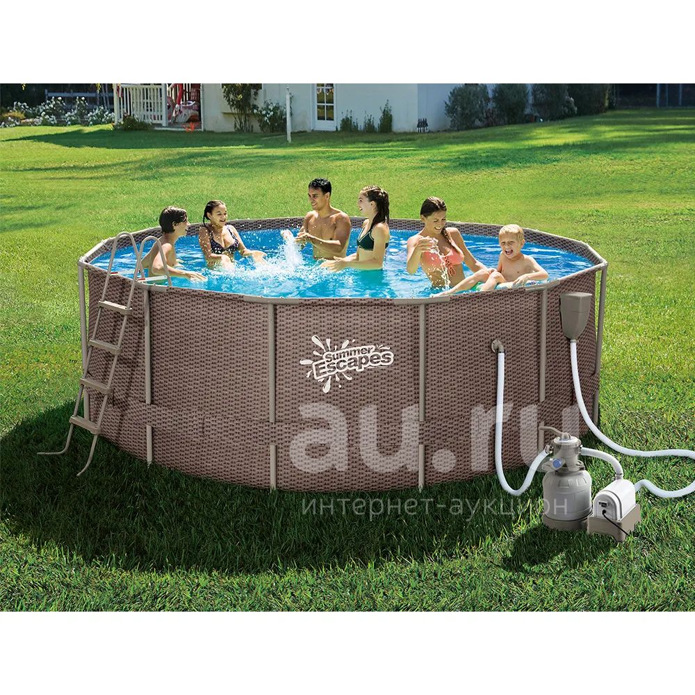 основная информация практичный сборный каркасный бассейн summerescapes р20-1352-s, обладает оригинальной конструкцией, которая позволяет собрать бассейн за 45 минут, без особых физических усилий. песочный фильтр-насос производительностью 4100л/ч, диаметр шлангов 38мм. чаша бассейна изготовлена из высококачественного трехслойного пвх. стойки каркаса металлические с покрытием. при сборке бассейна следуйте рекомендациям, указанным в инструкции. бассейн поставляется полным набором, достаточным для использования, кроме средств для обеззараживания воды. дополнительно вы можете приобрести аксессуары для каркасного бассейна summerescapes р20-1352-s в разделе quot;аксессуары для бассейнов quot; или выбрать из предложенных ниже. химические средства для обеззараживания воды можно подобрать в разделе quot;химия для бассейнов quot; или также выбрать из предложенных ниже. дополнительные характеристики объем: 13 785 л. в комплекте: инструкция по установке бассейна песочный фильтр-насос для очистки воды (4 100 л/ч) лестница тент подстилка под бассейн скиммер комплект для чистки бассейна delux