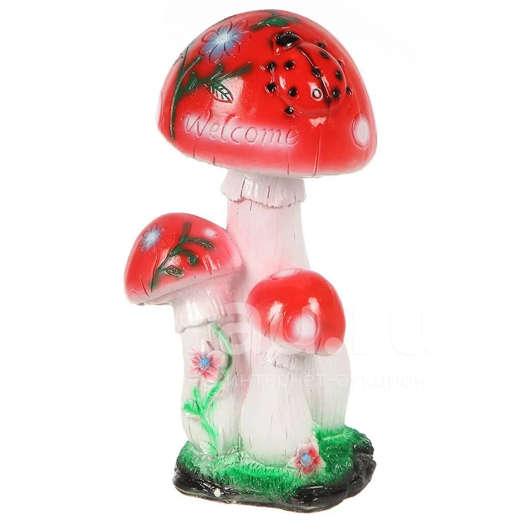 Фигурка садовая, Мухомор тройной с коровкой, 36х20 см, гипс,446