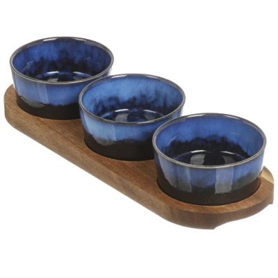 Менажница для сервировки, керамика, 19х19х1.5 см, 120 мл, 4 секции, 5 предметов, деревянная подставка, Apollo, Alturo, ALT-03