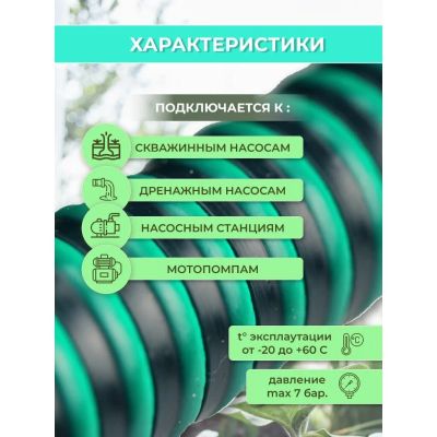1 090руб.Шланг напорно-всасывающий, ПВХ, диаметр 25 мм, 7 бар, морозостойкий, ...