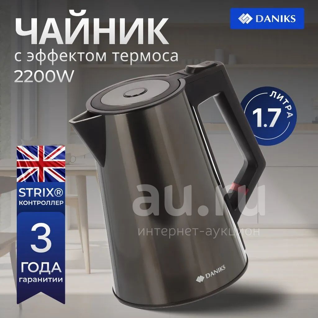 599руб.Чайник электрический Daniks, D2217, серый, 1.7 л, 2200 Вт, скрытый на...