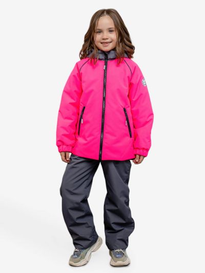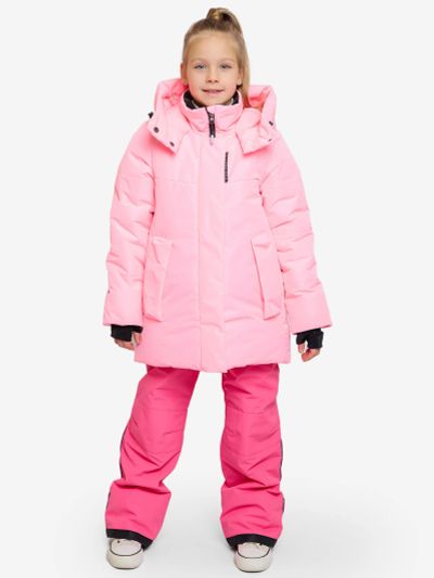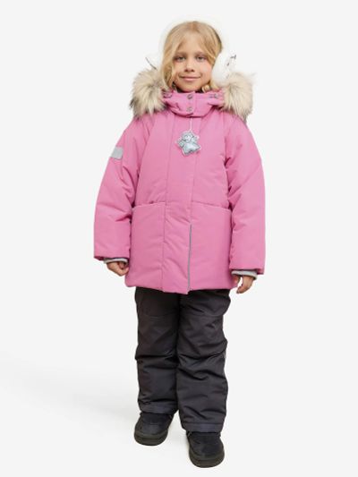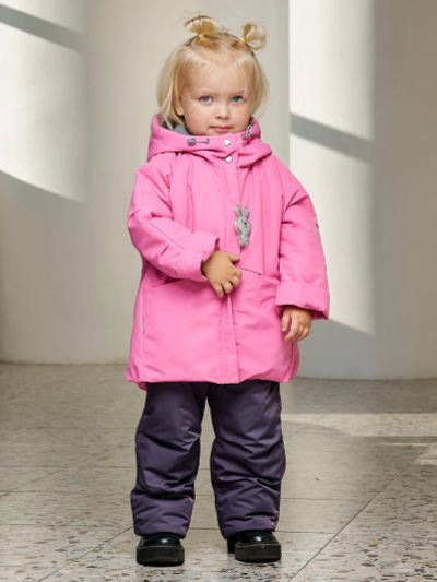 Комплект для девочки "Лалика" в розовом монохроме. Пастельный оттенок создает уютный образ, а продуманный дизайн обеспечивает максимальный комфорт и защиту от зимних холодов. Особенности — Мембранная ткань нежно-розового цвета. — Удлиненная куртка-пальто с боковыми разрезами. — Полукомбинезон свободного эргономичного кроя. — Комбинированная подкладка из флиса и таффеты. — Центральная застежка-молния с магнитными кнопками. — Многофункциональный воротник (можно носить 2 способами). — Вместительный теплый карман на магните. — Манжеты-митенки из мягкого трикотажа. — Регулируемый капюшон со съемной меховой опушкой. — Утяжка по низу куртки для защиты от ветра. — Полукомбинезон с трикотажными вставками. — Снегозащитная манжета с антискользящей тесьмой. — Регулируемые эластичные бретели. — Светоотражающие элементы по всему периметру. — Возможность регулировки длины рукавов и штанин. — Защита от поддувания по всем швам. Характеристики — Ткань верха: мембрана; материал подкладки: флис; материал опушки: экомех. — Утеплитель: куртка — 300 г/м2; полукомбинезон — 200 г/м2. — Температурный режим до −30 °C.
