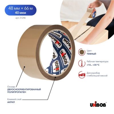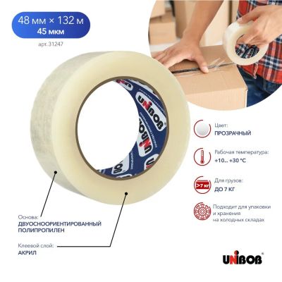 Надежная клейкая лента Unibob 600 — оптимальный выбор для упаковки и хранения вещей дома и на даче. Прозрачная полипропиленовая основа шириной 72 мм и длиной 66 м обеспечивает прочное и аккуратное склеивание. Толщина 45 мкм гарантирует долговечность и устойчивость к разрывам. Универсальное решение для герметичной фиксации коробок и бытовых нужд.