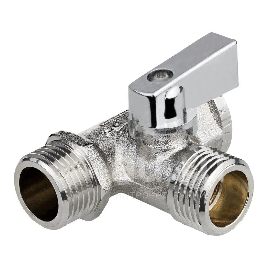 Кран для бытовых приборов, 1/2"х1/2"х1/2", г-ш-ш, латунь, трехходовой, ручка-флажок, шаровой, MasterProf
