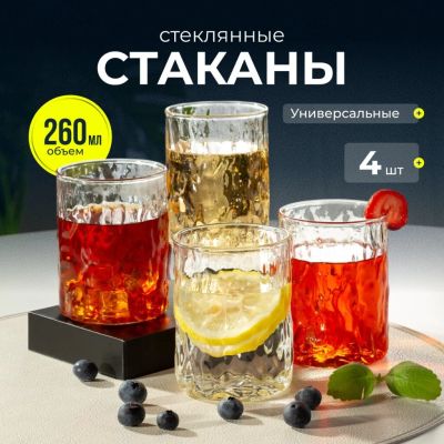 1 490руб.Стакан 300 мл, стекло, 4 шт, Декостек, Авокадус, 148/4-ПП