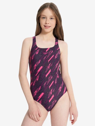 Купальник от Speedo поможет юной спортсменке добиться желаемых результатов. Каждая тренировка будет продуктивной! Модель с эргономичным кроем спинки Cross-back выполнена из эластичной ткани, которая тянется в 4 направлениях. Одежда отлично садится по фигуре и не сковывает движения. Материал с нитями эластана практически не впитывает воду, поэтому изделие быстро становится сухим. Ребенку будет комфортно во время отдыха на суше между заплывами. Прочная экипировка устойчива к воздействию активных компонентов хлора. То, что нужно для регулярных походов в бассейн.