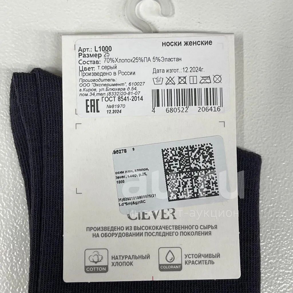 Носки жен, хлопок, Clever, т.сер, р.25, L1000