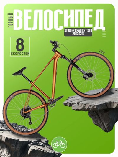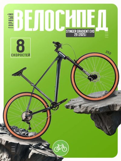3 490руб.Горный велосипед Stinger Gradient Evo 29, год 2025, цвет Черный, рост...