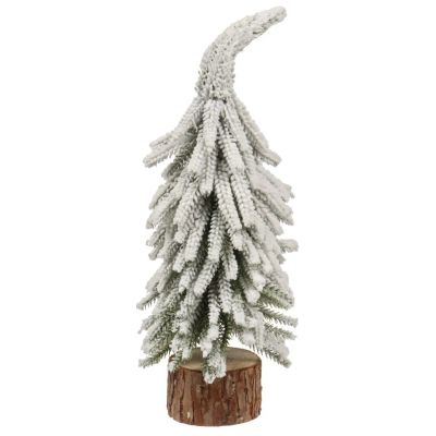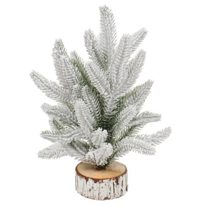 Белая настольная елка 55 см с литой заснеженной хвоей на деревянном пне: атмосферный декор для стола, подарка и уютного зимнего интерьера без лишних хлопот.