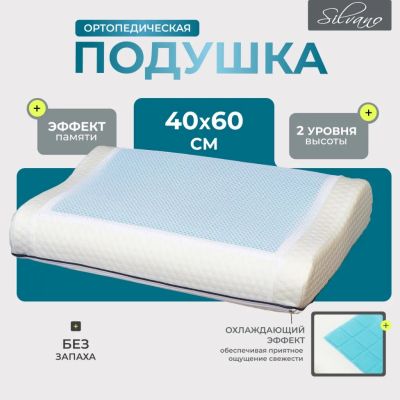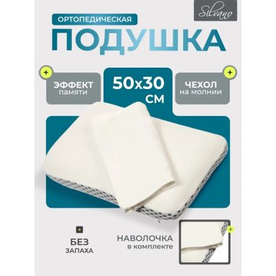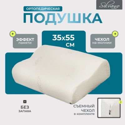 Ортопедическая подушка Silvano 35х55 см: комфортный латекс с эффектом памяти для здорового сна и поддержки шеи. Подходит для дома, дачи и подарка.