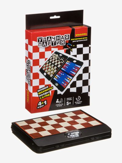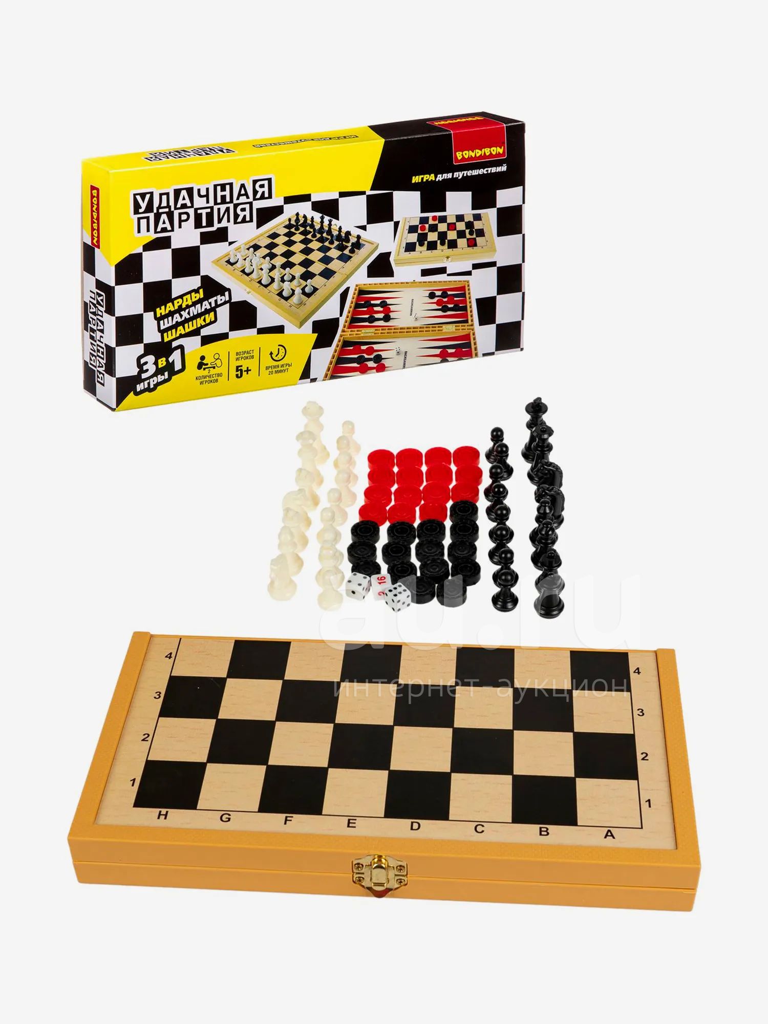 Сразу 3 популярные интеллектуальные игры в удобном формате для путешествий! Настольная игра "Удачная партия 3 в 1 (шахматы, шашки, нарды)" от Bondibon содержит компактную игровую доску с замком, а также набор фишек и фигур, которые помогут интересно провести время дома, на пикнике и в дороге. Выберите игру, расположите фишки или фигуры на доске и приступайте к поединку! Игровой набор поможет развить внимательность, усидчивость, логическое и пространственное мышление. В набор входит: игровая доска, 3 игральных кубика, 30 шашек, 32 шахматные фигуры, инструкция.