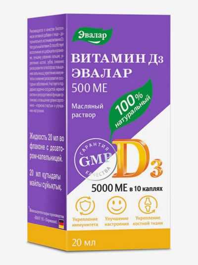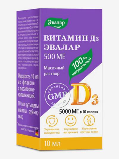 Витамин D3 — один из наиболее важных витаминов для здоровья человека. Он играет ключевую роль в усвоении кальция и фосфора в организме, способствуя укреплению костей и зубов. Кроме того, витамин D3 поддерживает иммунную систему, снижает риск развития простудных заболеваний, улучшает настроение и помогает справляться с признаками депрессии. Витамин D3 выполняет и ряд других не менее важных функций: — Повышает мышечный тонус. — Снижает риск развития остеопороза. — Регулирует работу щитовидной железы. — Поддерживает репродуктивное здоровье женщин и мужчин. — Повышает прочность костной ткани. — Повышает уровень серотонина. Витамин D3 500 МE от Dr.Zubareva — это: — Удобная форма приема (впрыскивание). — Оптимальная дозировка активных веществ, обеспечивающая быструю усвояемость даже у детей с 3 лет. — Удобная форма спрея обеспечивает биодоступность и быстрое восполнение недостатка витамина D3 в организме. — Состав, разработанный практикующим врачом превентивной медицины Натальей Зубаревой. Нутрицевтик соответствует мировым стандартам качества: производится из качественного сырья, не содержит консервантов и проходит контроль качества с лабораторным подтверждением на каждом этапе производства. Состав: — Рафинированное растительное масло. — Холекальциферол (витамин D3). Рекомендации по применению: взрослым принимать по 1 впрыскиванию (нажатию дозатора) в ротовую полость в течение дня, можно добавлять в пищу. Продолжительность приема 2–4 месяца или согласно рекомендациям специалиста.