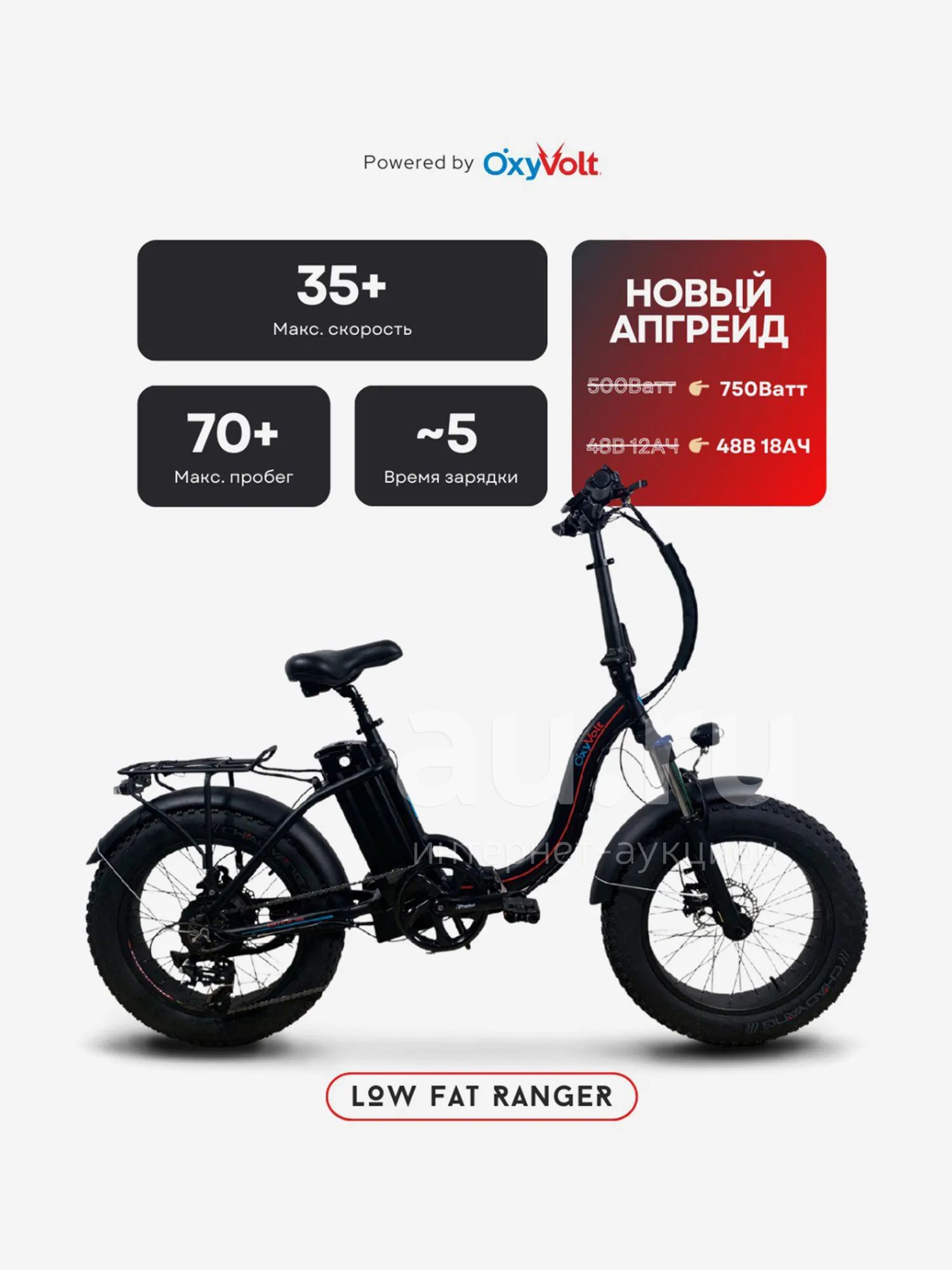 Электровелосипед OxyVolt "Low Fat Ranger" 750Вт, 48В, 18Ач, гидравлика, фэтбайк, складной, 20 дюймов, черный, Черный