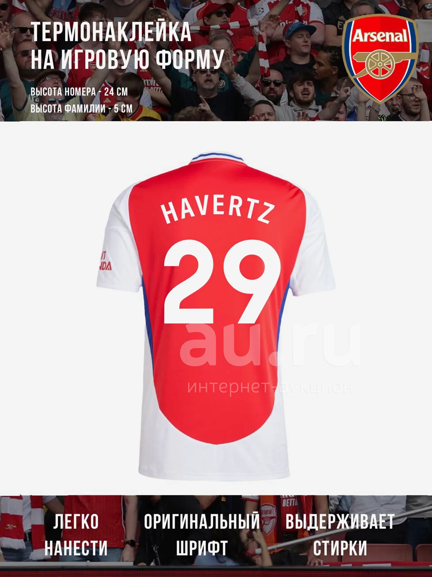 399руб.Термонаклейка HAVERTZ / Хавертц Арсенал 29 белая, Белый