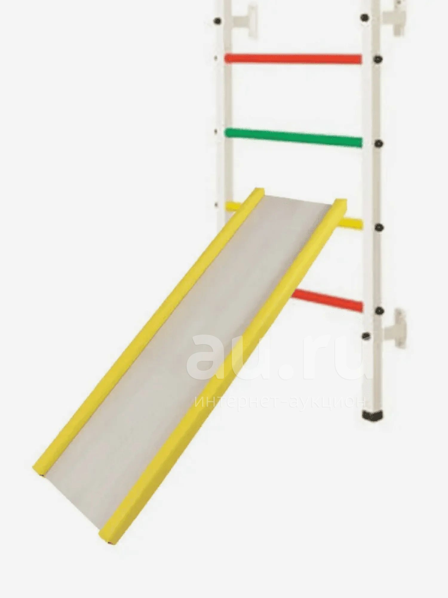 Навесная горка для шведской стенки изготовлена из ДСП и покрыта защитным материалом. Бортики выполнены из поролона и обиты кожзаменителем. Характеристики — Длина 130 см. — Ширина 38 см.