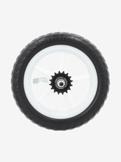 Бескамерное заднее колесо 12" для велосипеда. Пластиковый обод, звезда 16T, втулка 110х160 мм, ножной тормоз. Товар без оригинальной упаковки.