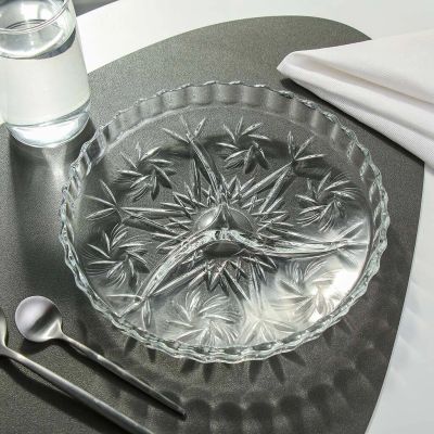 Менажница из стекла, состоящая из четырех секций. Подходит для сервировки орехов, закусок, оливок, сладостей. Благодаря необычному дизайну украсит любой стол. Посуда важный предмет в приготовлении и подаче блюд. Приготовленная еда выглядит аппетитней и привлекательней если подать ее на красивой посуде.