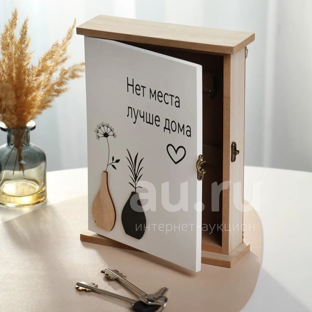Ключница «Дом» 25.5×19×5.8 см из МДФ и металла — стильное хранение для 5 ключей. Идеальна для дома, дачи, подарка.
