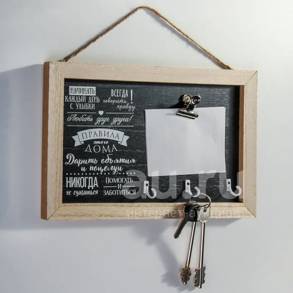 Ключница «Правила дома» 30х20 см: стильная организация ключей и заметок для дома, дачи или офиса — компактно, удобно, подарок с пользой.