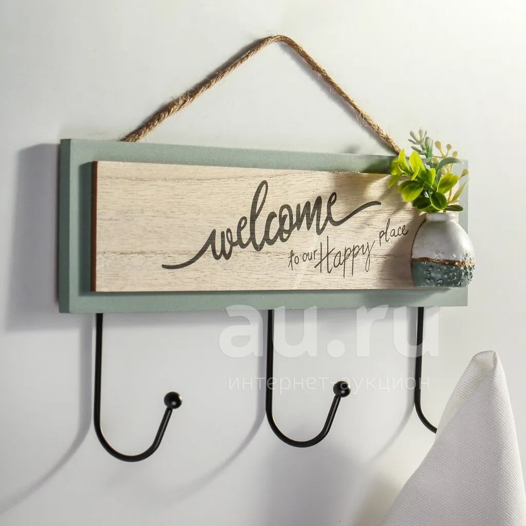 179руб.Ключница Welcome, 32.8х15 см, МДФ, 3 крючка, на декоративном панно, н...