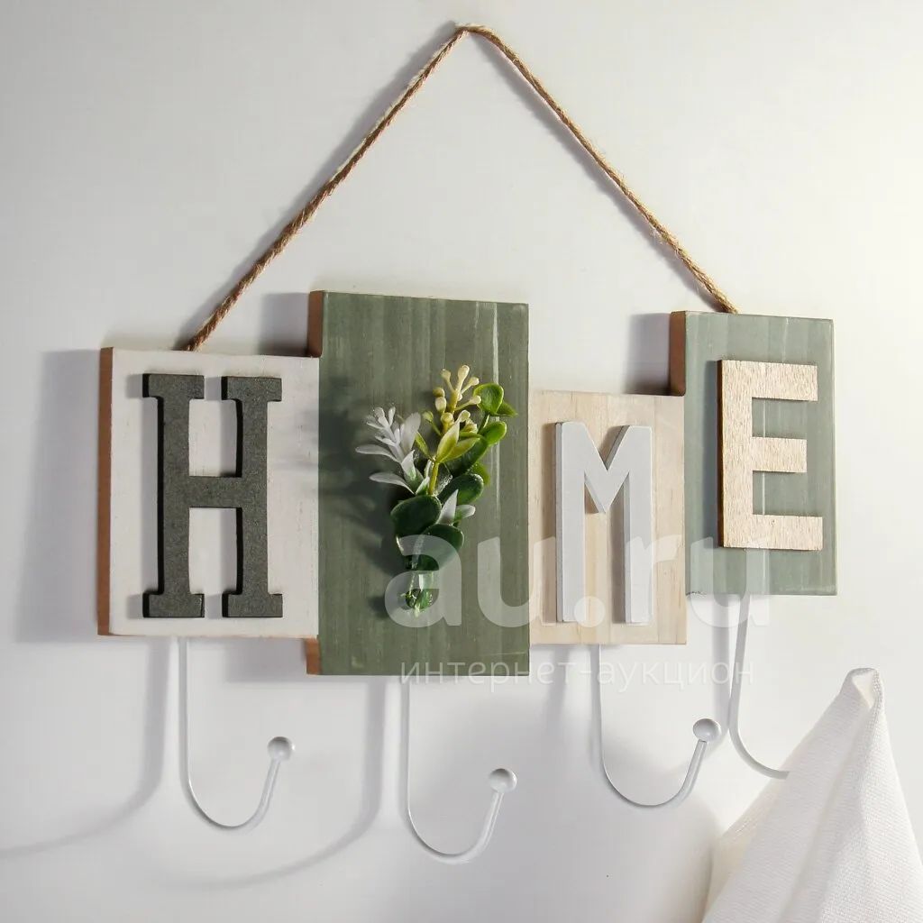 179руб.Крючок Home, 32.5х20.5 см, МДФ, 4 крючка, на декоративном панно, наст...