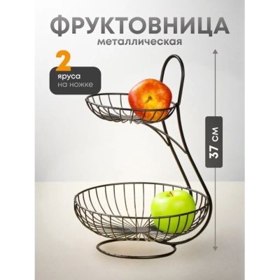 Элегантная двухъярусная ваза для фруктов из металла 32×18×32 см — компактное решение для стильной сервировки и экономии места на кухне или даче.