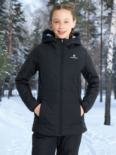 Для эффективных тренировок по беговым лыжам — утепленная куртка от Nordway. С ней любая дистанция станет для ребенка легкой прогулкой. Благодаря наполнителю в виде синтепона куртка сохраняет тепло даже в холодную погоду. Модель рассчитана на температуру до 0 °C. Важно: восприятие температуры индивидуально и зависит от активности и погодных условий. Мембрана, дополненная водоотталкивающей пропиткой, эффективно защищает от осадков и поддерживает оптимальный микроклимат. Показатели водонепроницаемости и паропроницаемости: 8000 мм / 3000 г/м2/24 ч. Благодаря приталенному крою куртка комфортно садится по фигуре: в ней будет удобно двигаться. Предусмотрено 2 кармана на молнии. В них поместится все, что пригодится во время тренировки или лыжной прогулки. Модель эффективно защищает от продувания. Если ветер усилится, можно накинуть капюшон и отрегулировать низ куртки с помощью эластичного шнура. Молния со специальным клапаном не натирает кожу подбородка. Нет риска защемить ее при застегивании. Благодаря светоотражающим деталям ребенка будет легче заметить в темноте и в условиях плохой видимости.