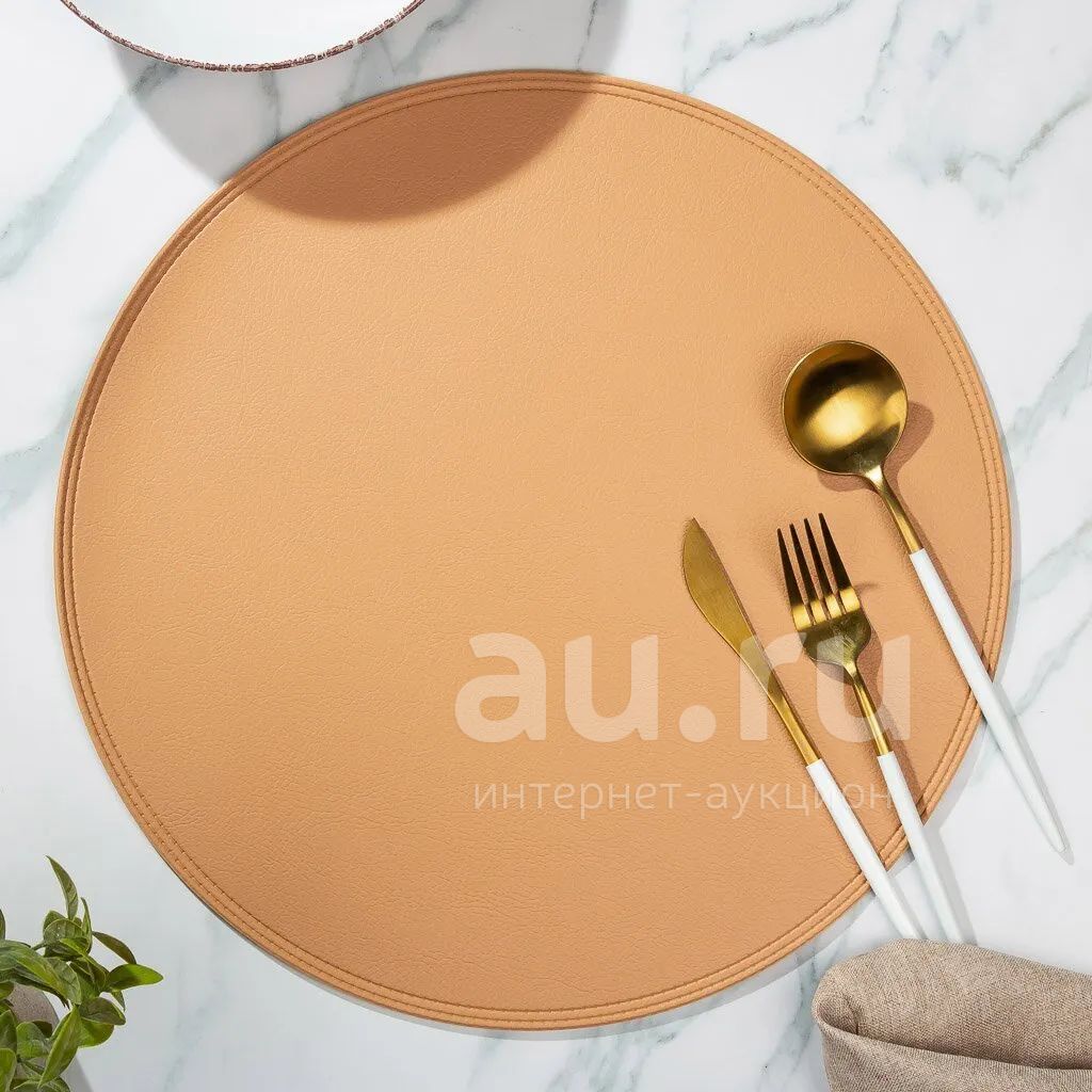 Набор круглых полимерных салфеток 38х38 см, 4 шт: стильная защита для стола, долговечность и легкий уход для дома и дачи.