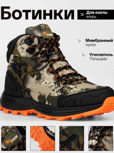 Охотничьи ботинки "Магнум Pride" обеспечивают водостойкость до 4 ч. Удобная система шнуровки с крючками-зацепами в верхней части обеспечивает надежную фиксацию. Шнурки не растягиваются, водоотталкивающие и выполнены из мультифиламента. Комбинированная подошва обеспечивает эффект антискольжения и гашение вибрации, что делает ботинки идеальными для охоты. Укрепленная пяточная часть и носок добавляют дополнительную защиту. Утеплитель Thinsulate сохраняет тепло, а мембранный чулок обеспечивает защиту от влаги. Анатомическая стелька обеспечивает комфорт при длительном ношении. Материал верха: 100% полиэстер, ТПУ; материал дышащей подкладки: сетка (100% полиэстер); материал подошвы: ЭВА, резина RB. Водостойкость до 4 ч. Материал верха — комбинированный состав для надежности и эргономичности. Удобная система шнуровки с крючками-зацепами в верхней части. Шнурки не растягиваются, водоотталкивающие, из мультифиламента. Комбинированная подошва с эффектом антискольжения и гашения вибрации. Укрепленная пяточная часть. Укрепленный носок. Утеплитель Thinsulate. Мембранный чулок. Анатомическая стелька.