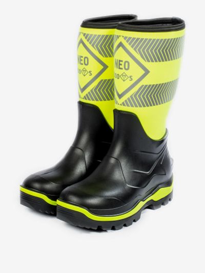 Модель Neo Boots — комбинированные зимние сапоги (укороченный вариант) из полиуретана с многослойным чулком. Галоша сапог абсолютно водонепроницаема благодаря тому, что изготовлена методом прилива 2 полимеров (полиуретана и вспененного полиуретана) к внутреннему многослойному чулку, состоящему из неопрена, флиса и утеплителя шелтер (Shelter 650) с низкой теплопроводностью (400 МП), обеспечивающими тепло и комфорт ноги. Модель укомплектована защитным композитным подноском из поликарбоната (от ударов в носочной части энергией 200 Дж) и антипрокольной неметаллической стелькой (от проколов и порезов силой до 1200 Н). Рекомендованы для всех видов зимней рыбалки.