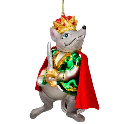 Грозный Мышиный Король из сказки Щелкунчик станет особым украшением на праздничной елке. Изделие выполнено из стекла высокого качества. Лапки и сабля сделаны из полирезины, что позволяет максимально точно передать их детализацию. Шею персонажа украшает меховой воротник. Сверкающие краски с жемчужным финишем добавляют атмосферу волшебства и праздника. Сказочные герои красиво смотрятся в интерьере. Когда они собираются вместе, то интересно дополняют друг друга.