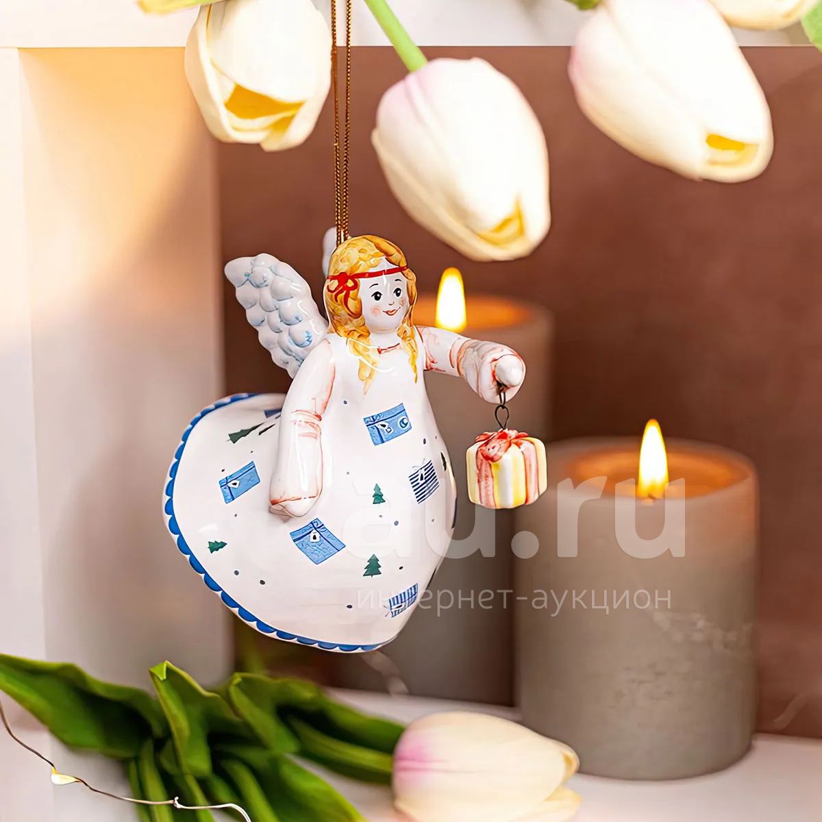 Елочная игрушка Ярославская Керамическая Мануфактура Ангел с подарком