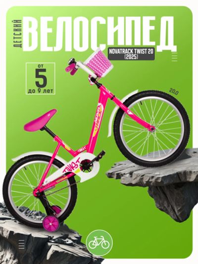 1 586руб.Детский велосипед Novatrack Twist 20, год 2025, цвет Зеленый