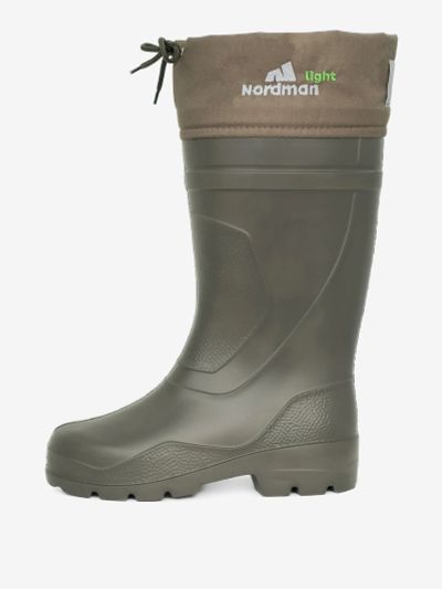 Резиновые сапоги Nordman Quaddro предназначены для зимней рыбалки, охоты, походов в лес. Сапог изготовлен из материала DEC (Durable EVA Compound), разработанного фабрикой Nordman. Этот материал на 30% прочнее ЭВА. Благодаря толстой 2-слойной подошве из DEC и ТЭП (термоэластопласт) обеспечивается высокая степень защиты от порезов и проколов, а также промерзания. От боковых порезов защищают утолщенные стенки в носочной и пяточной части. Подошва, оснащенная твердосплавными шипами, устойчива к скольжению. Зимние сапоги Quaddro имеют ячеистое дно. 2-слойная стелька плотностью 1200 г/м2 изо льна и полиэфирного полотна отводит конденсат в ячейки и удерживает его там. Рыбацкие сапоги Quaddro поставляются со съемными 5-слойными влагоотводящими фольгированными вкладышами с использованием натурального меха (не менее 50%), а также волокон льна и шерсти. Утеплитель разработан по технологии Nordman Thermo. Вкладыши эффективно сохраняют тепло и обеспечивают отведение влаги. Рекомендуемый температурный режим использования зависит от индивидуальных особенностей человека, но не ниже −50 °C. В теплую погоду в межсезонье сапоги можно носить без вкладыша. Водонепроницаемые сапоги Nordman Quaddro комплектуются манжетой из влагоотталкивающей армированной ткани оксфорд рипстоп 600D, которая защищает от попадания влаги, грязи и снега внутрь сапога. В верхней части манжеты находится утягивающий шнурок с фиксатором. Под манжетой размещена круговая светоотражающая полоса, повышающая видимость и безопасность в темное время суток. Светоотражающая полоса хорошо заметна со всех сторон. Задняя часть резиновых сапог Quaddro оснащена выступающей шпорой для быстрого снятия. Непромокаемые сапоги из ЭВА — это надежная и удобная рыболовная обувь для рыбалки с берега, лодки, на льду. Обувь из ЭВА от Nordman нельзя хранить и сушить вблизи нагревательных приборов.