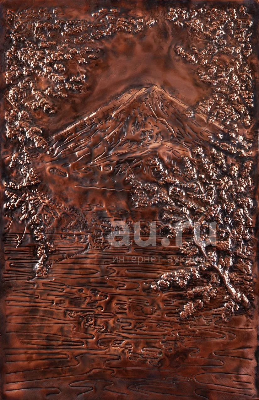 Чеканка ."Фудзияма" . Медь. 60х75 .Багет. Доставка . На Заказ
