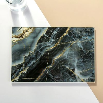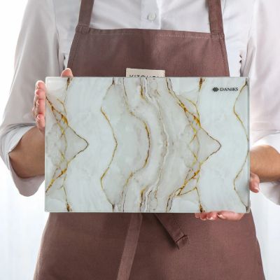 Стеклянная разделочная доска Daniks 30х20 см: стильная защита поверхности кухни, универсальна для хлеба, мяса, овощей. Легко мыть, не впитывает запахи.