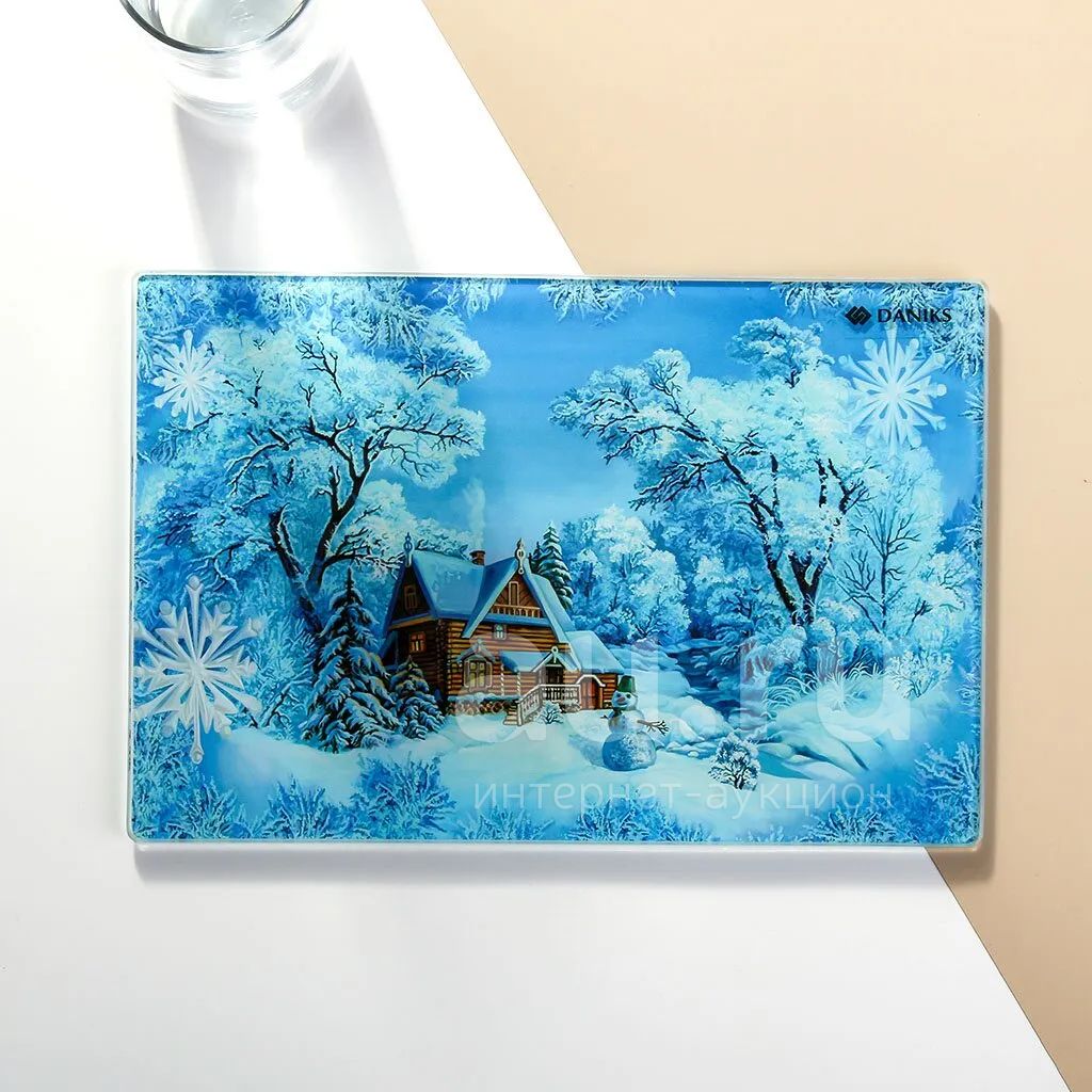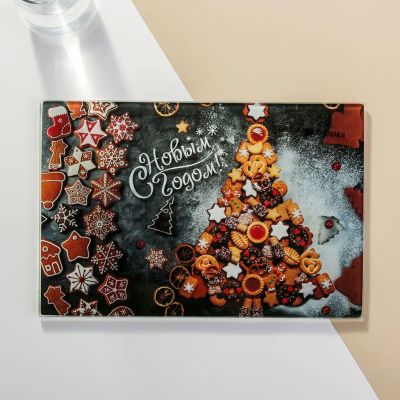 Доска разделочная стекло, 30х20 см, прямоугольная, Daniks, Символ Года-1