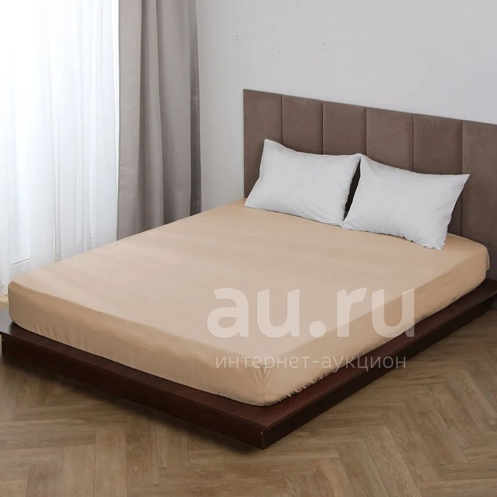 Простыня на резинке 2-спальная Silvano «Латте» 160×200×25 см из 100% хлопка поплин — комфортный сон без соскальзывания и замятий, идеальный выбор для дома и дачи.